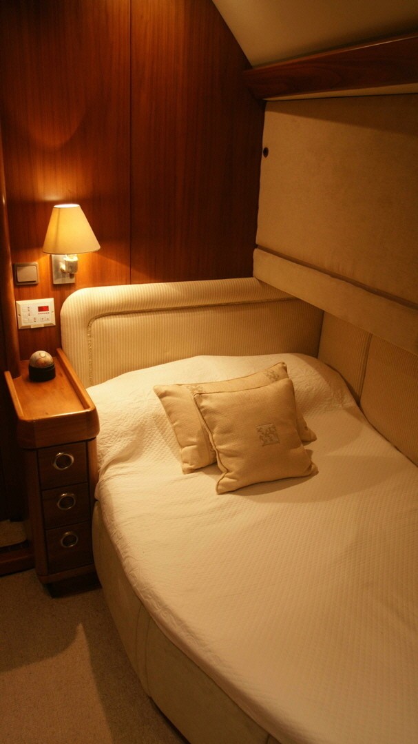 The salon features a formal dining area on the port side with a large U shaped sofa, ideal for lounging. On the starboard side there is a breakfast bar facing the galley forward, an entertainment center and 2 plush leather occasional chairs, allowing everyone a place to retreat.