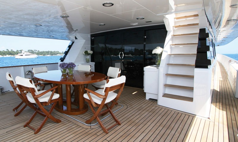There are two comfortable salons, a formal dining room and spacious accommodation for ten guests in five large staterooms. The full-width master stateroom has a Spa Pool and TV and DVD.
