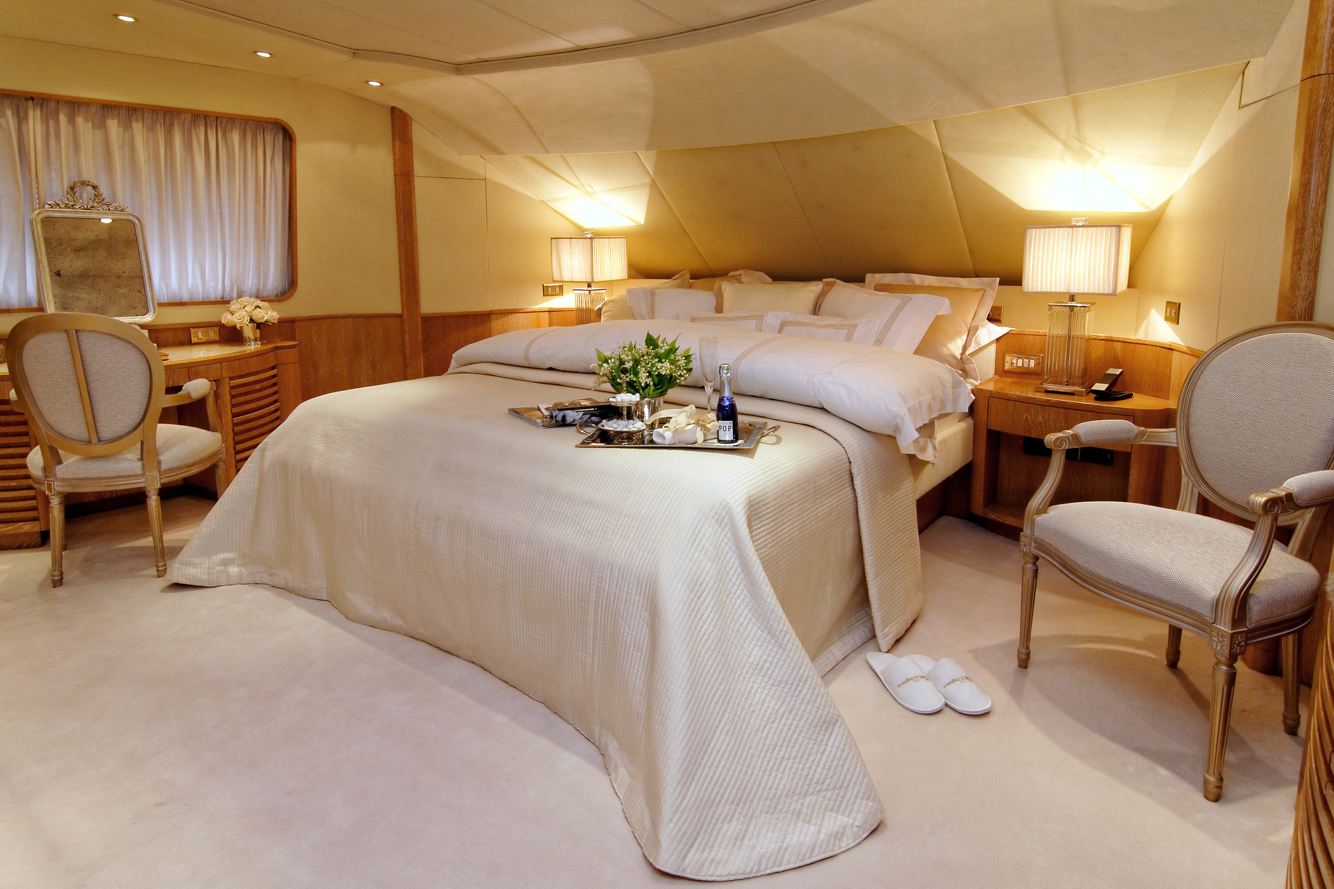 There are two comfortable salons, a formal dining room and spacious accommodation for ten guests in five large staterooms. The full-width master stateroom has a Spa Pool and TV and DVD.