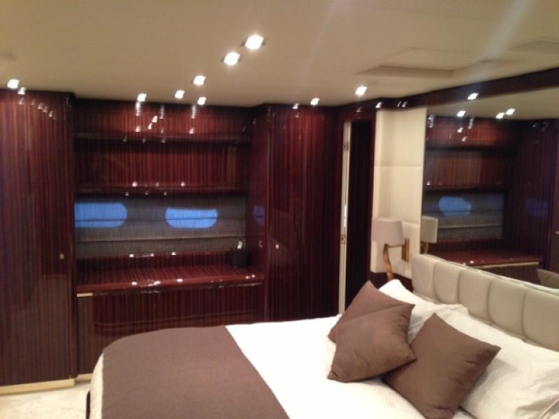The master stateroom is amidships boasting a center lined queen bed, sofa, vanity and en-suite facilities with his and hers sinks and bath tub. A VIP cabin is forward amidships with a center lined double bed and en-suite facilities.