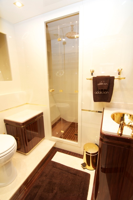 The Arno Leopard 32m motor yacht ADDICTION (ex TSARA 4) has a beam of 7.3m (24ft) and a draft of 1.2m (3.11ft). The planing design hull is powered by 3 x 2186HP MTU engines enabling effortless speeds of 30 knots cruising and 40 knots maximum.