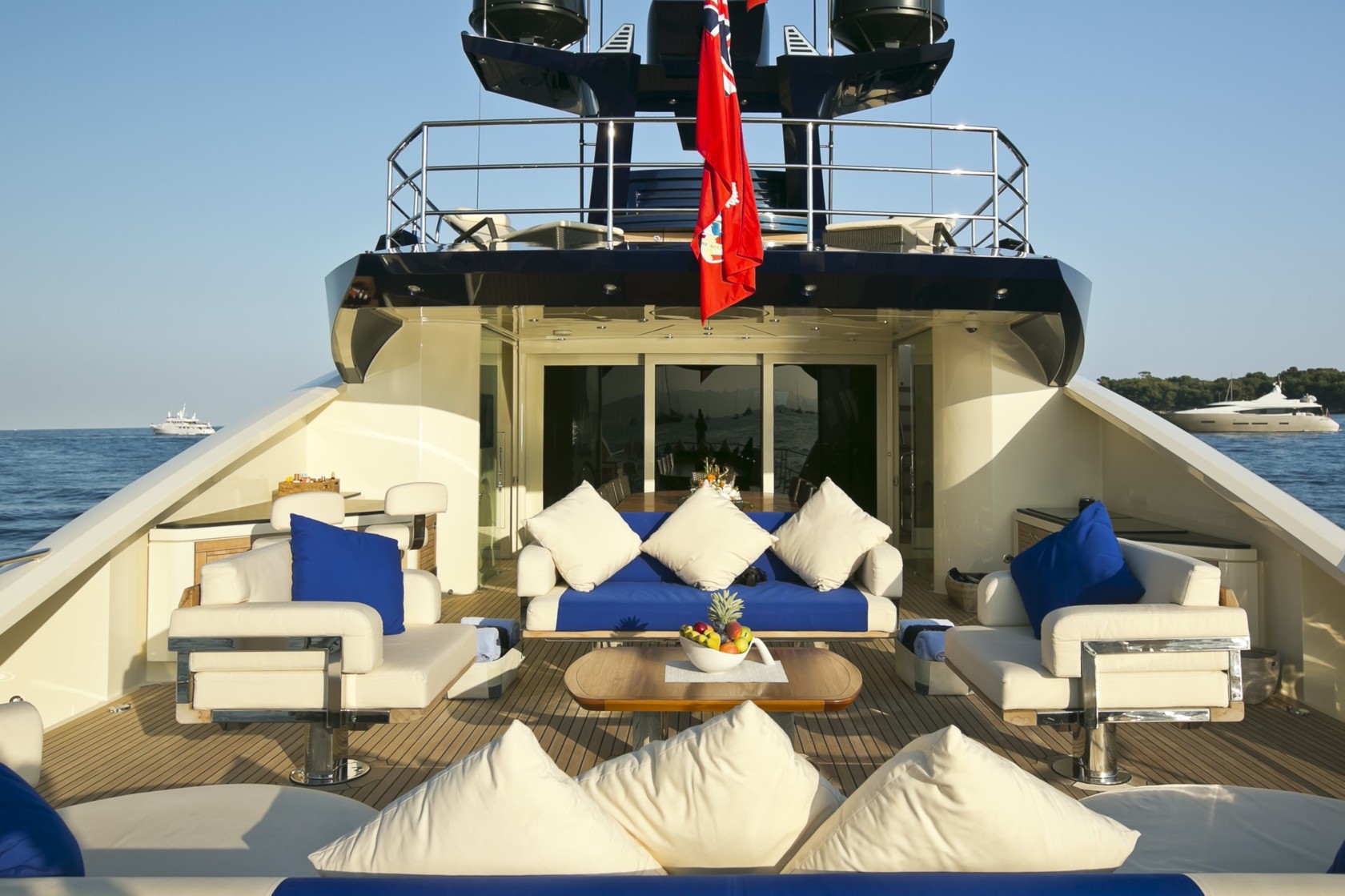 NOTABLE FEATURES: ~ Neutral interior decor ~ Open-air dining area ~ Swim platform ~ Professional crew of 7 ~ Latest A/V entertainmnet system ~ Ample exterior living ...