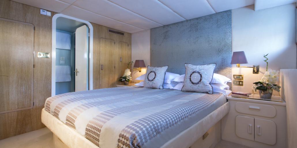 She measures 34m (111.7ft) and can accommodate up to 8 guests in 4 en-suite cabins.