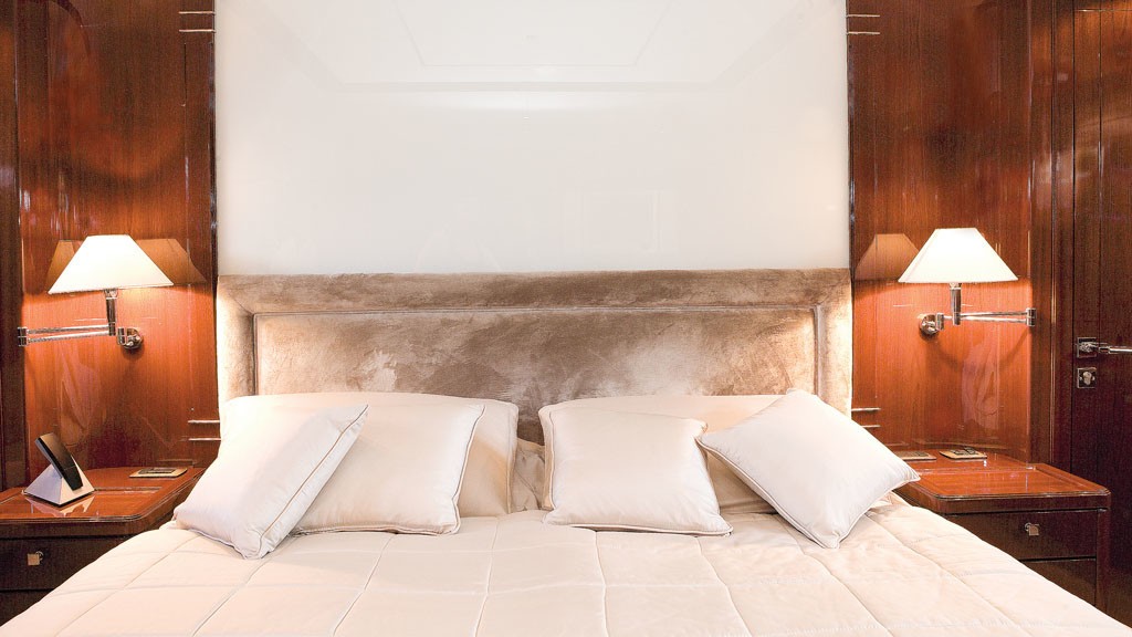 She is distinctive design by San Lorenzo 100 planing hull measures 30m (98.4ft) and she can accommodate up to 9 guests in 4 deluxe cabins.