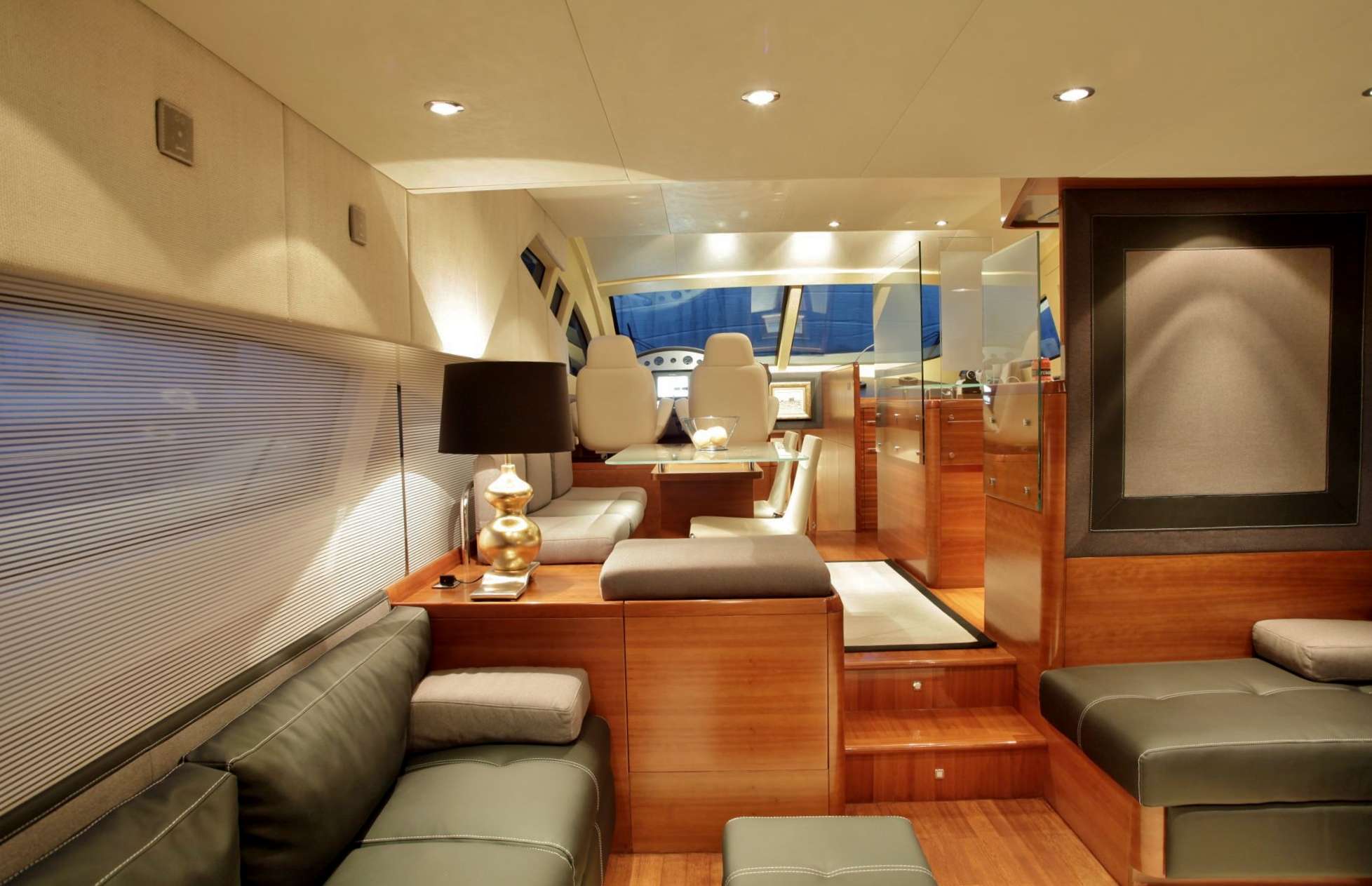 This beautifully renewed motor yacht features a contemporary warm interior, with inviting cherry toned wood panels and crisp white soft furnishings. The salon is spacious, offering ample seating on port and starboard, a coffee table and full entertainment centre with flat screen TV. Forward of the salon lounge, is the formal dining area.