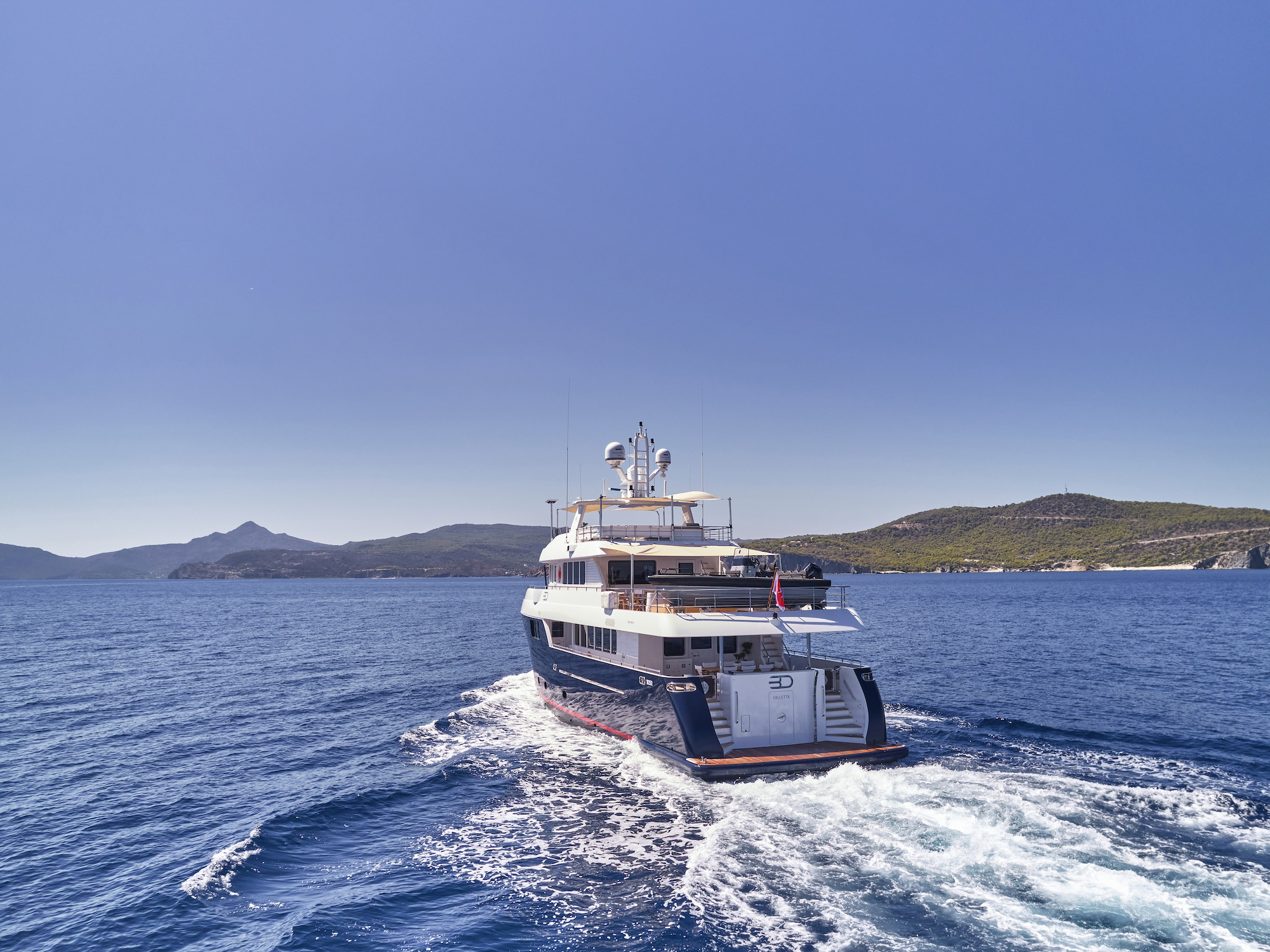 30m Motor yacht 3D (ex Serenity, Lyubov-P, Stella di Mare) provides yacht charters in Ionian Islands, Greece, East Med, Dodecanese, and Athens.