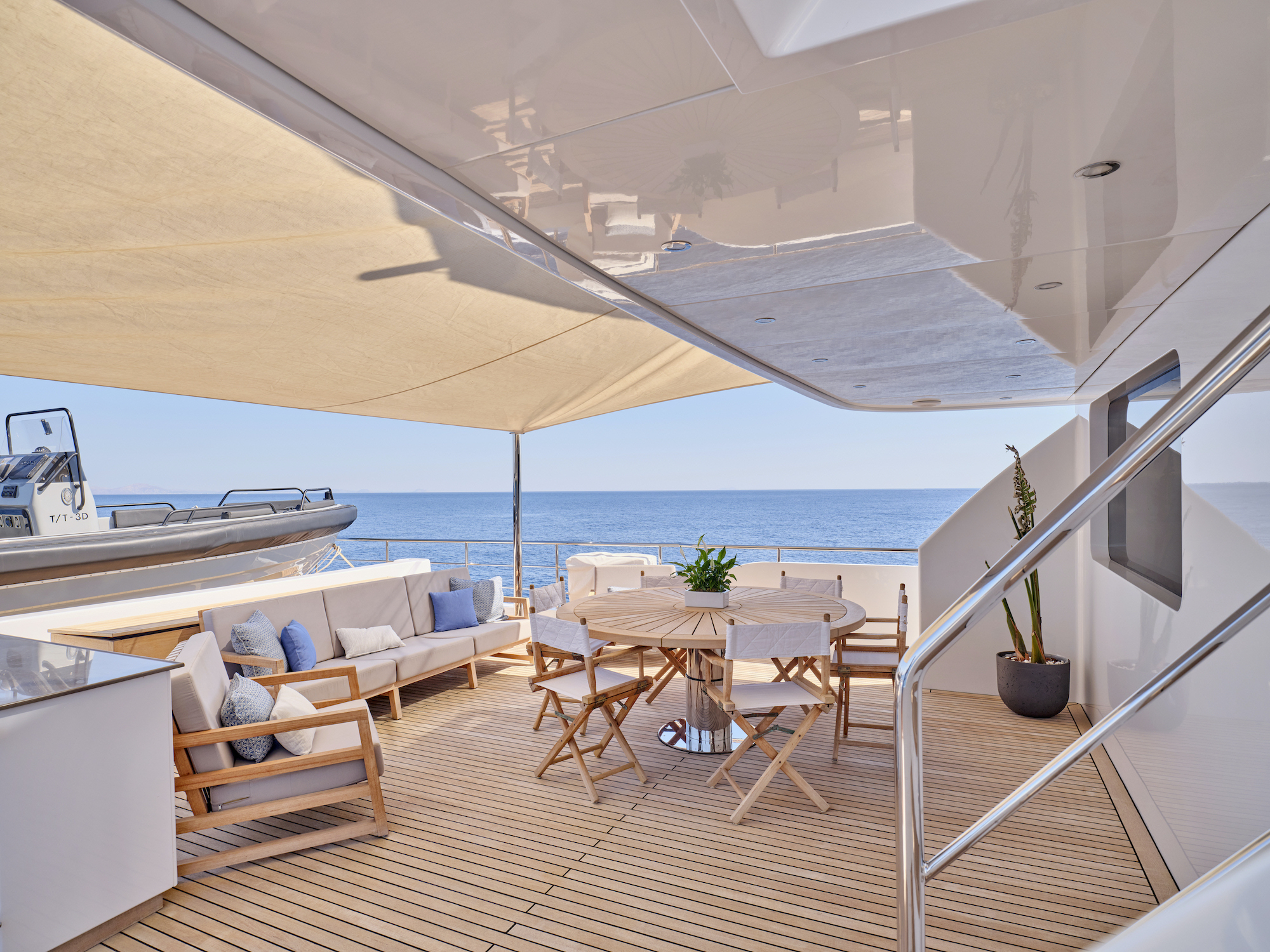 30m Motor yacht 3D (ex Serenity, Lyubov-P, Stella di Mare) provides yacht charters in Ionian Islands, Greece, East Med, Dodecanese, and Athens.