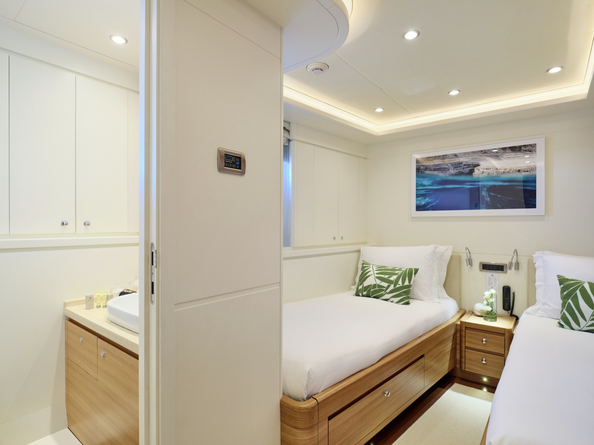 She can accommodate up to 10 guests in 4 ensuite cabins and has a professional crew of 6.