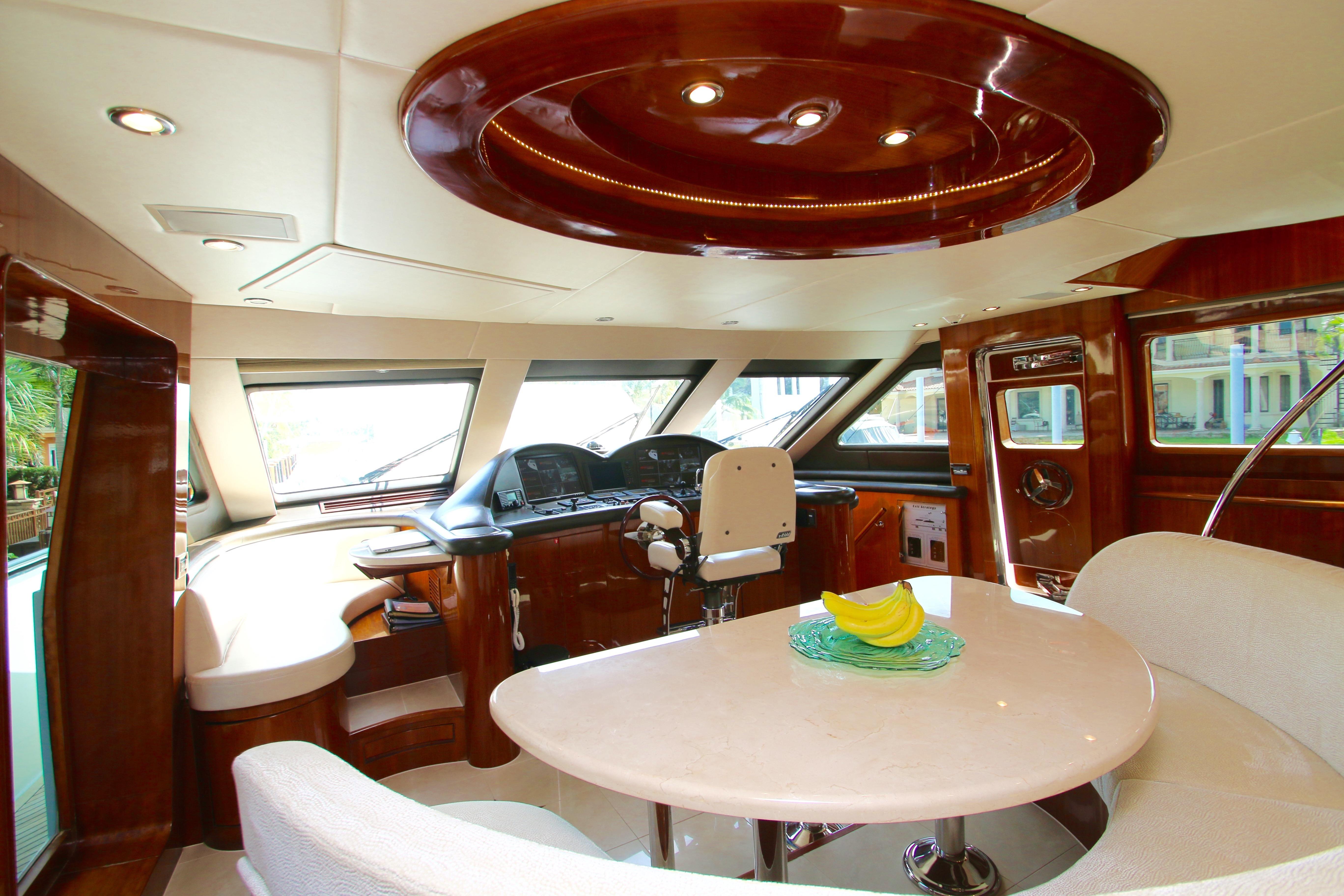 Further forward a hall leads to the large open style galley, a small seating area with table and helm station.