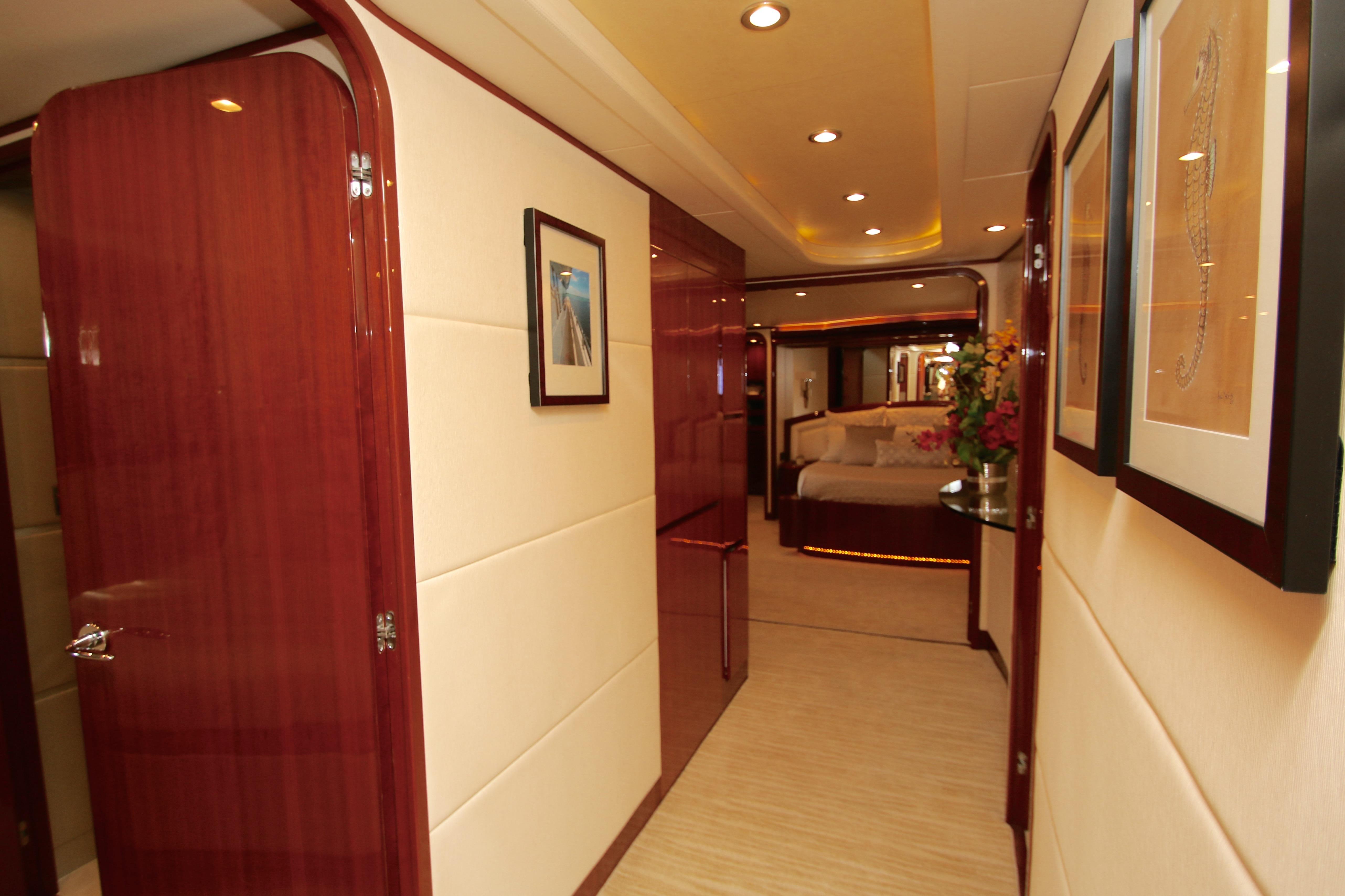 The master suite is amidships with a center lined bed, vanity, sofa, walk in wardrobe and en-suite facilities with his and hers sinks and large shower. The VIP cabin is forward and on the port side with a walk around double bed and en-suite facilities.