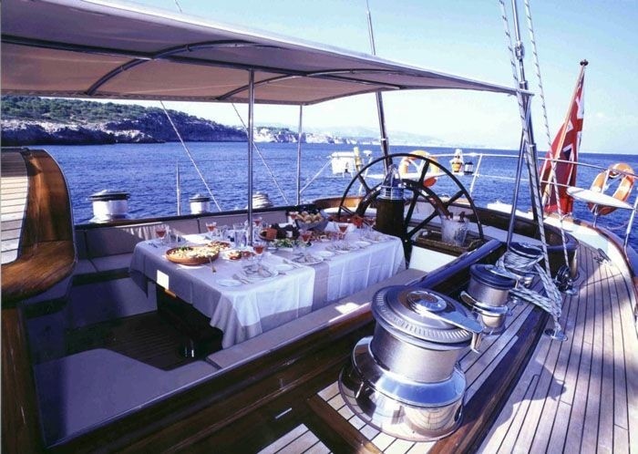 Shamoun’s interior design has been beautifully enhanced by the use of chestnut floorboards which have been inlaid with mahogany. Luxury sail boat Shamoun’s saloon is extremely spacious and boasts a bar as well as a state of ...