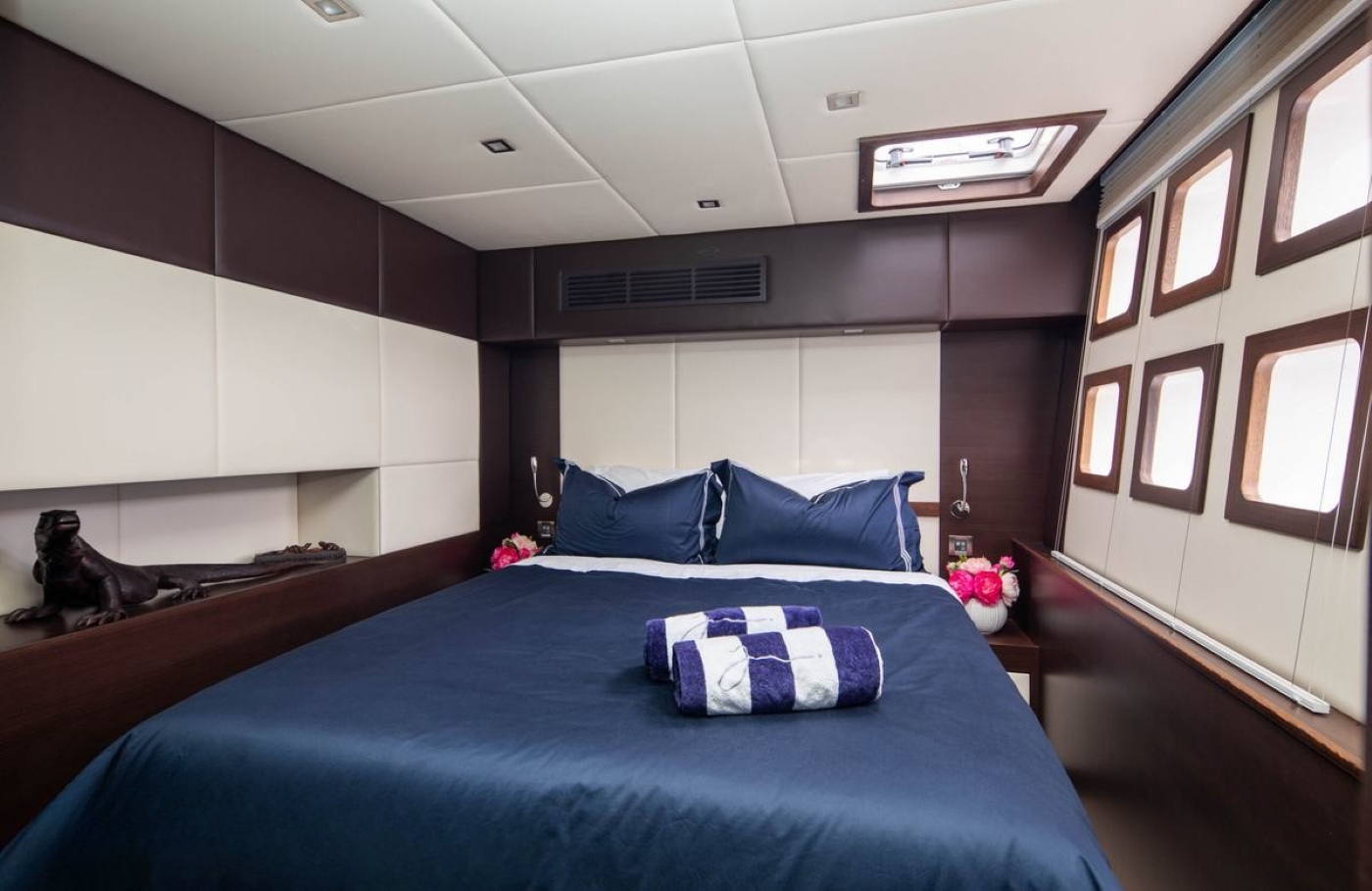 Accommodation aboard the Sunreef 70 yacht FENG is offered to 8 guests in 4 magnificent double cabins: 1x Master Cabin with WIR and Ensuite