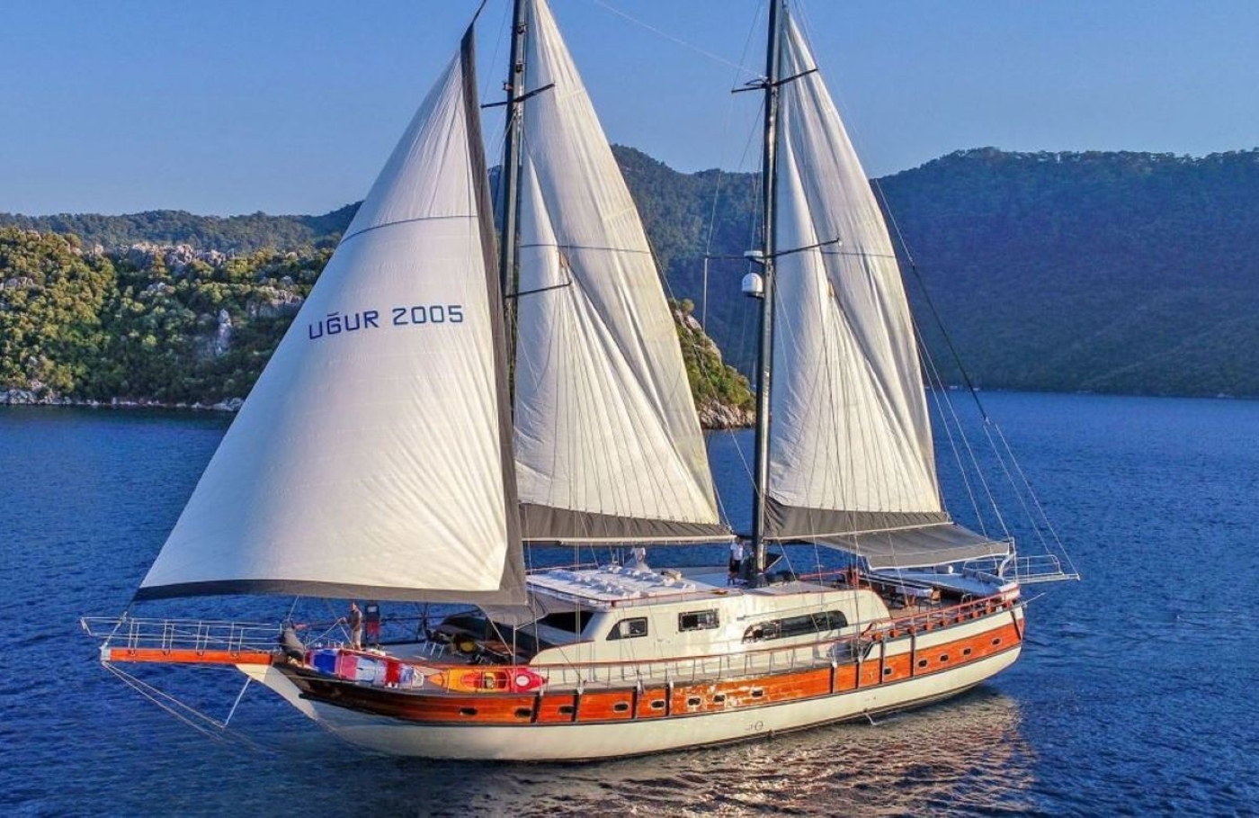 Sailing yacht UGUR 2006 is a deluxe category yacht comprising of seven cabins, including a master cabin and 6 double cabins able to accommodate 14 charter guests. She is not only a very spacious and comfortable charter yacht, but she is also fully equipped for all guest's needs.