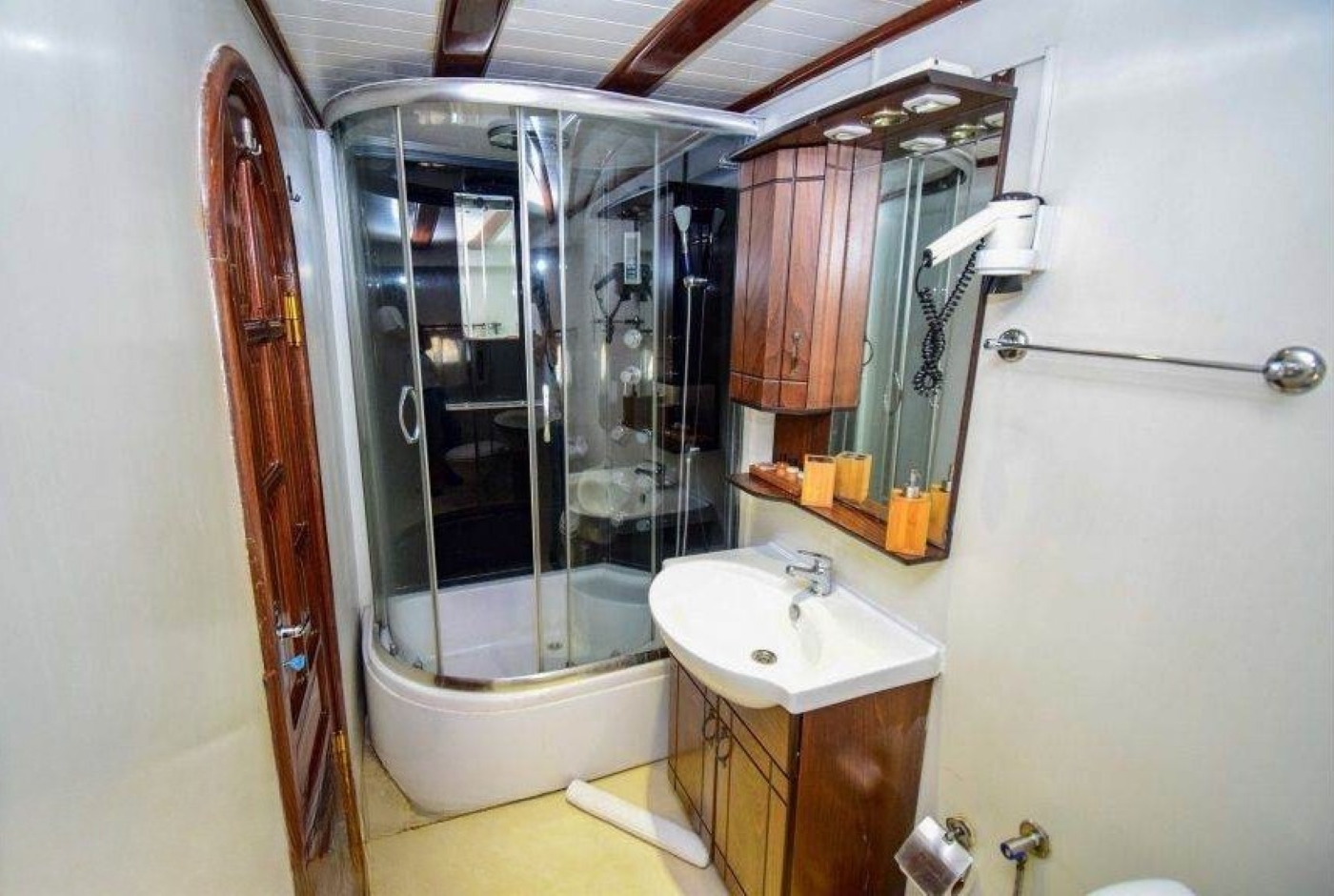Sailing yacht UGUR 2006 is a deluxe category yacht comprising of seven cabins, including a master cabin and 6 double cabins able to accommodate 14 charter guests. She is not only a very spacious and comfortable charter yacht, but she is also fully equipped for all guest's needs.