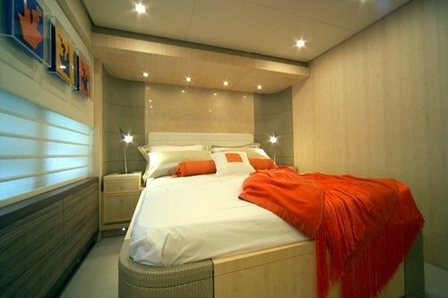 Luxury, speed and style are all descriptive of the motor yacht GEORGE P built by AB Yachts in 2006. Measuring 28m (91.10ft), yacht GEORGE P has a sleek dark planing hull and silver superstructure. Charter yacht GEORGE P can accommodate up to 8 guests in 4 cabins and is available in the East Mediterranean.