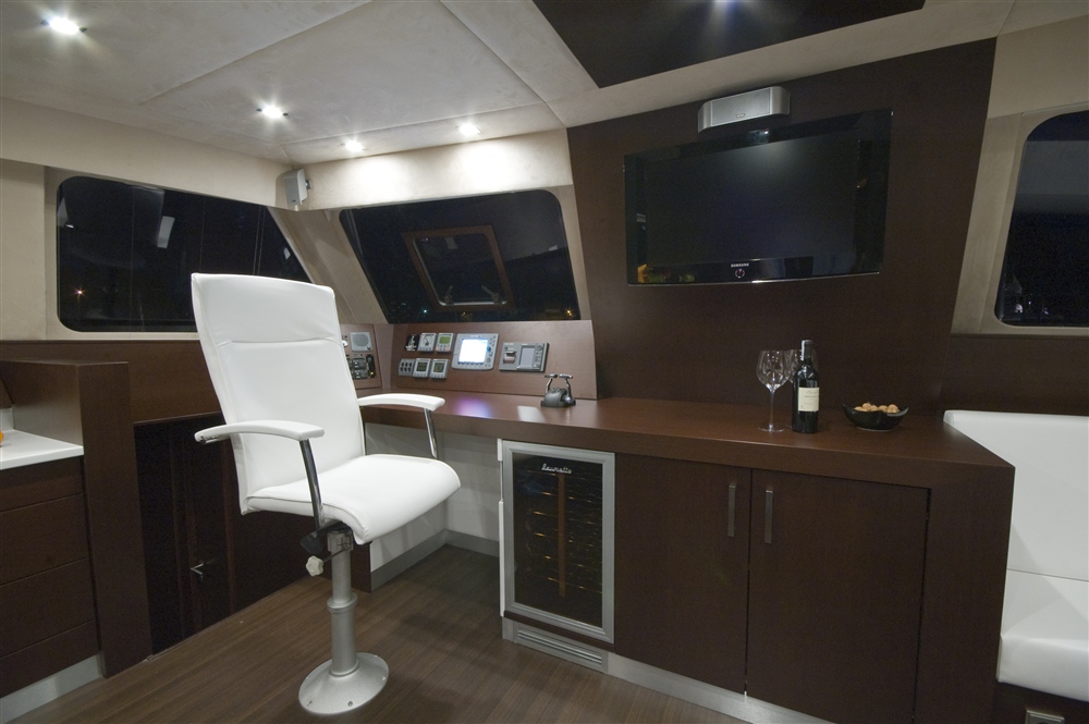 The foredeck offers a great place to relax on the trampolines in the sun.