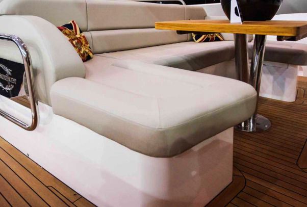 The salon boasts a large sofa with coffee table on the starboard side and a full state of the aft entertainment system on the port side. Forward, guests can dine at the formal dining table. Below decks, motor yacht FAB 2 can accommodate up to 6 guests in 3 cabins.