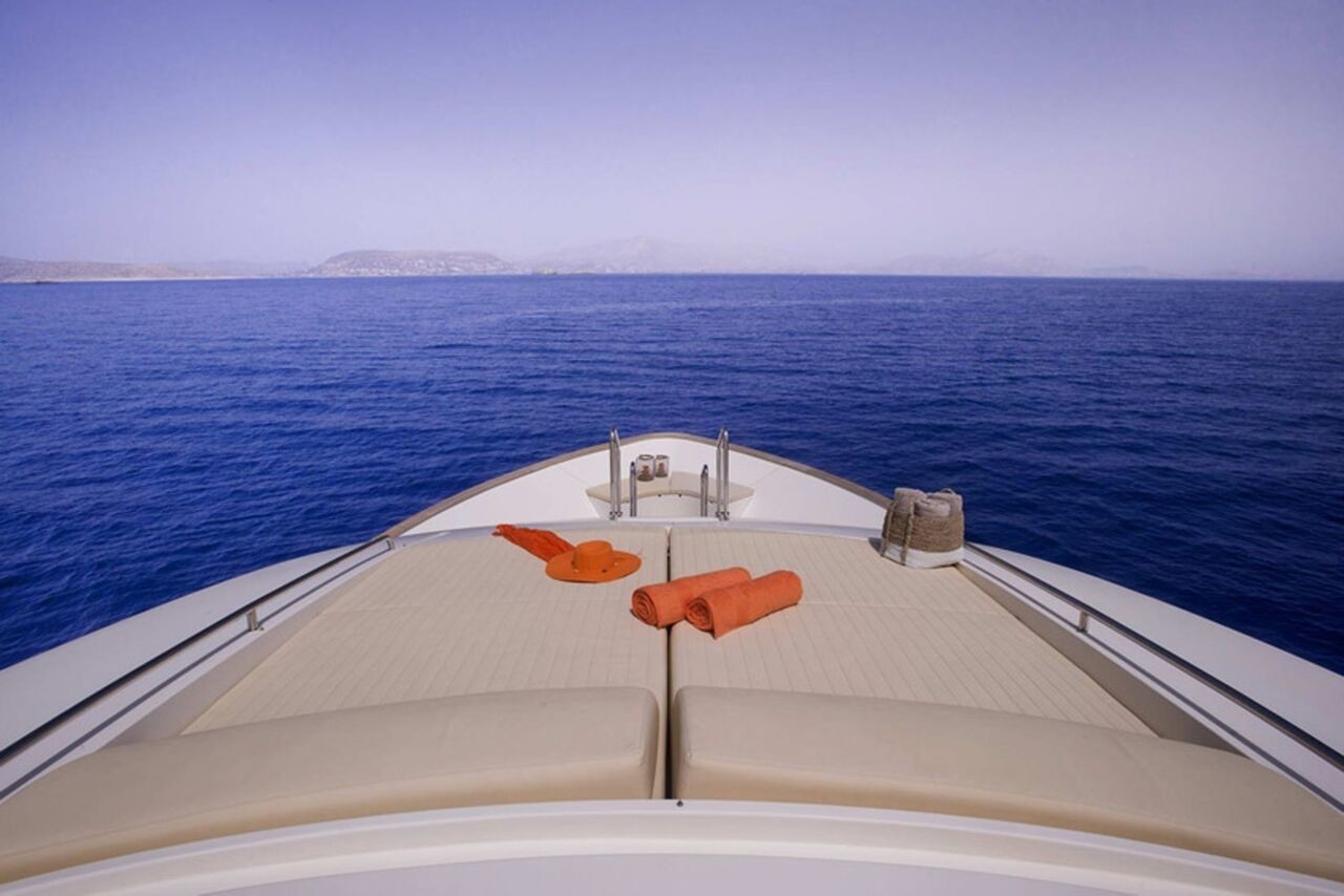 Wrap around decks lead to the foredeck where there is further private seating and a raised double sunpad.