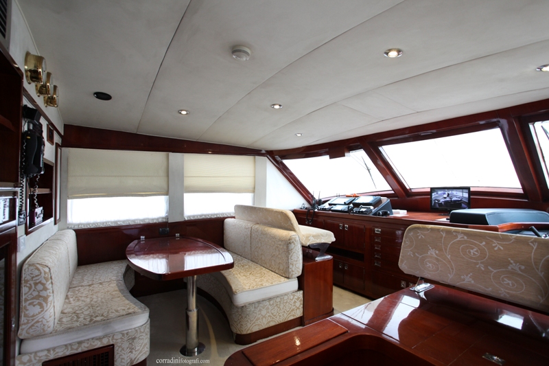 Forward of the salon and adjacent to the helm station is a casual formal dining space.