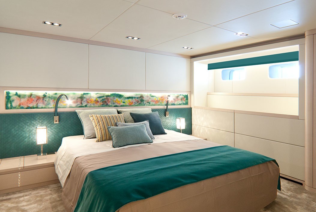 She boasts beautiful interior design by Sandrine Melot and naval architecture by Andrea Vallicelli, with accommodation for up to 10 charter guest in 5 deluxe cabins, serviced by a crew of 8.