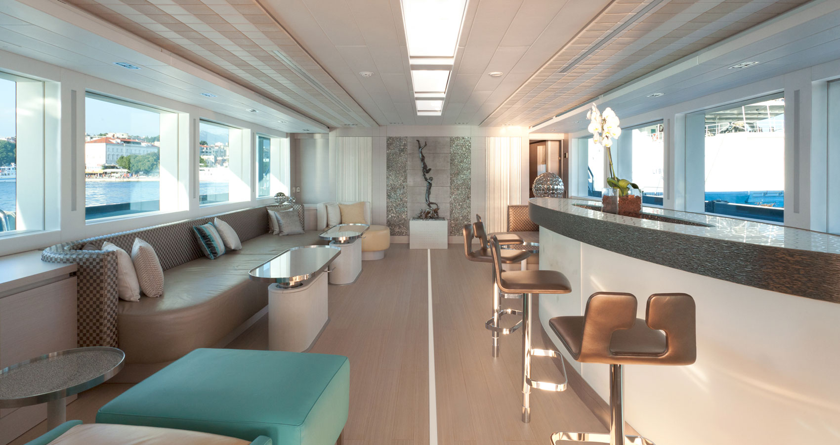She boasts beautiful interior design by Sandrine Melot and naval architecture by Andrea Vallicelli, with accommodation for up to 10 charter guest in 5 deluxe cabins, serviced by a crew of 8.
