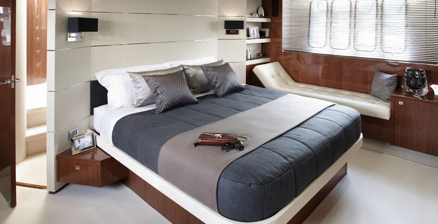 Luxury Princess V78 yacht ARAMIS can accommodate up to 8 charter guests, offering 2 double and 2 twin cabins, all with en-suite facilities. The master suite is amidships and full beam of the yacht, with a center lined double bed, day bed and vanity. The VIP cabin is forward and full beam of the yacht, with a center lined double bed.