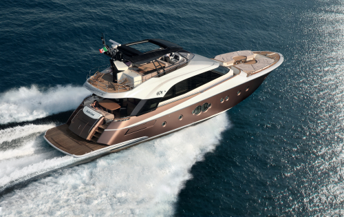 Luxury charter yacht ESMERALDA OF LONDON was designed and built by Monte Carlo Yachts in 2012 and measures 21.3m (69.9ft) in length. The yacht can accommodate up to 8 charter guests in 4 en-suite cabins and is available for charter in the Mediterranean.