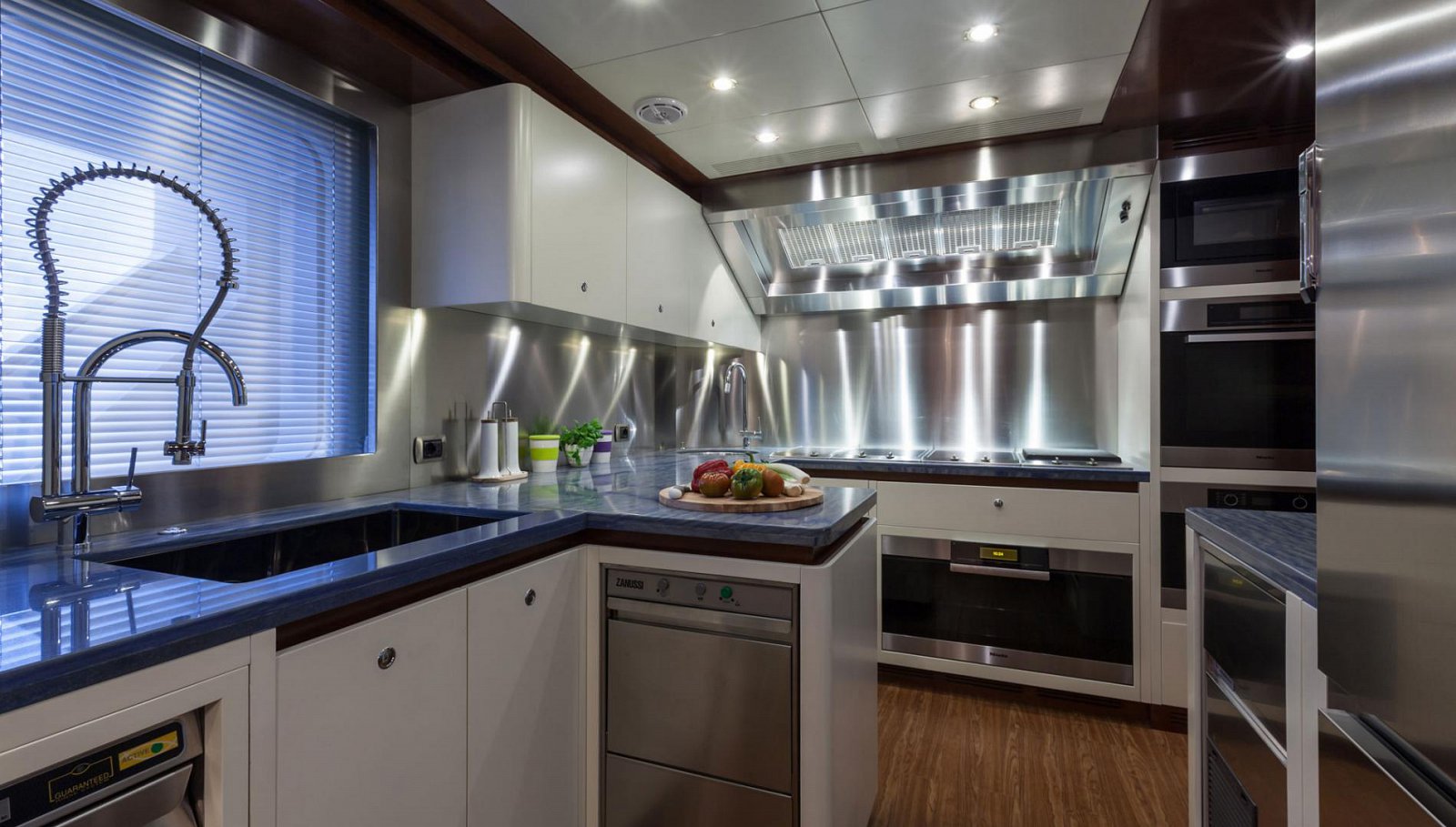 There is a full-beam master suite with two side balconies, a full-beam VIP cabin, two double cabins, as well as two twin cabins.