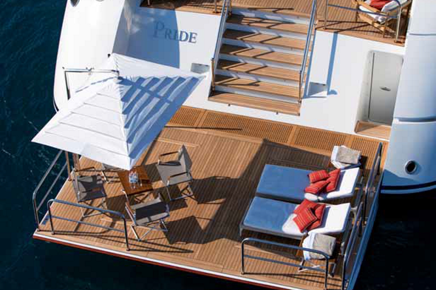 PRIDE'S NOTABLE FEATURES: exceptionally large exterior spaces ~ Beach club ~ Extra large swim platform ~ Sauna ~ Impressive array of water toys ~ Side balconies off ...