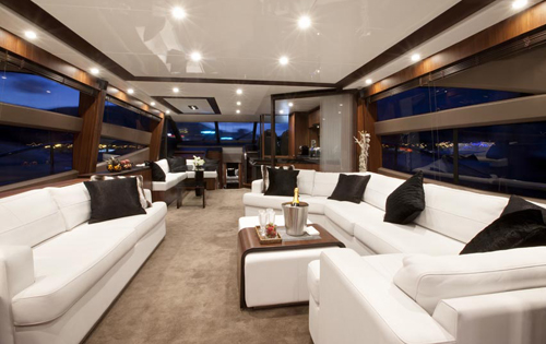 The salon and dining boast an open and airy ambiance with 2 sofas, a coffee table and full entertainment aft and formal dining forward. Elongated side windows provide plenty of natural light and idyllic views.