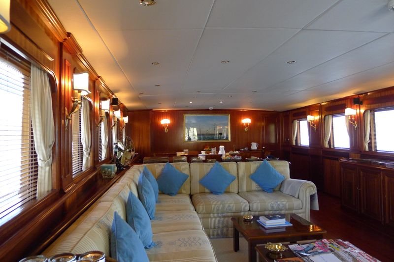 The salon and dining is a modern open plan, with the lounge aft and dining forward. Panoramic windows surround the space, creating an open airy ambiance, while providing unrivaled views. Luxury guest accommodation is in one master cabin, forward on the main deck, plus 3 guest cabins on the lower deck.