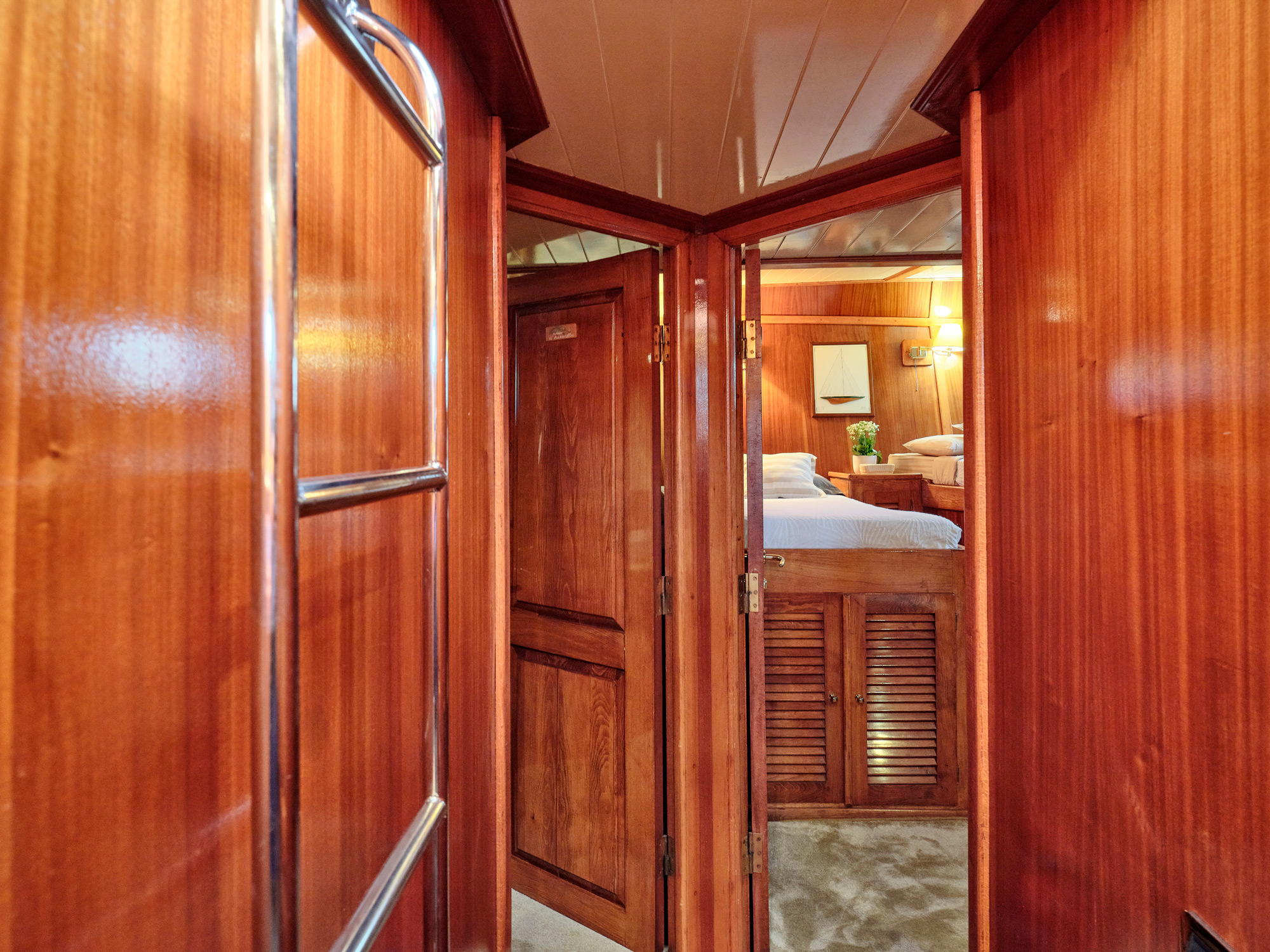 Further sun pads on the foredeck allow everyone to find a place to relax. She boasts generous wrap around teaks decks, with high rails, the yacht is easy to walk around safely both at anchor and under sail.