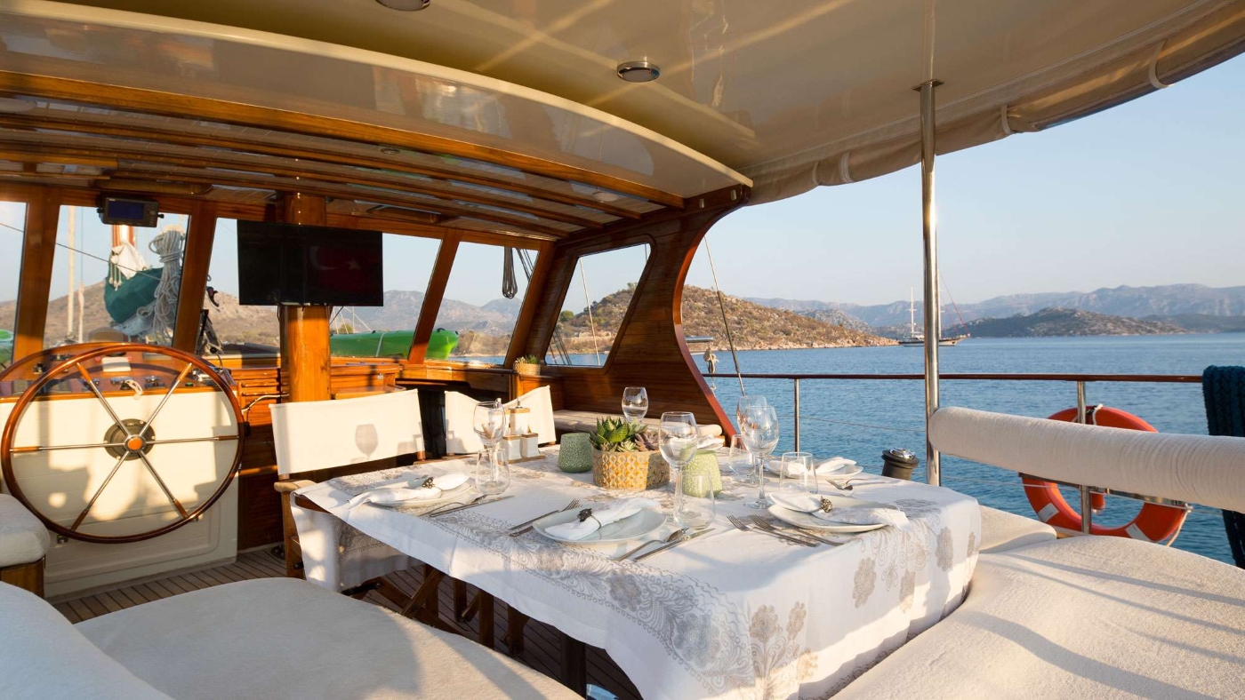 The vessel has plenty of exterior areas to relax and soak up the warm sun. The aft deck is shaded with ample seating and an alfresco dining option.