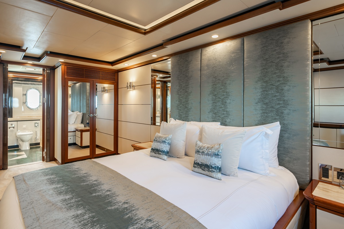 The yacht can accommodate up to 10 charter guests in 5 ensuite cabins, while a professional crew of 9 ensure everyone has a relaxing time on board.