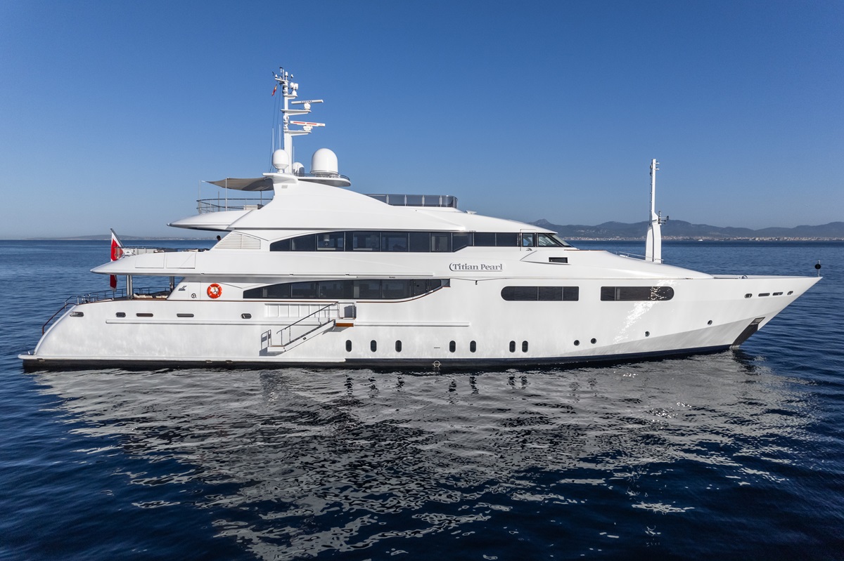 Yacht TITIAN PEARL (ex MAGENTA M, MAGNIFICA) provides yacht charters in The Mediterranean, Directory, Spain, Sardinia, Balearic Islands, Monaco, and French Riviera.