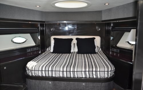 Designed by Estrella Salieti, M/Y GEORGIA has a vibrant chic interior incorporating crisp whites, simple blacks and fun accent colours. The salon and dining are an open plan with the lounge on the starboard side, a large U shaped sofa and coffee table invite guests to relax, on the port side is a casually elegant dining table.