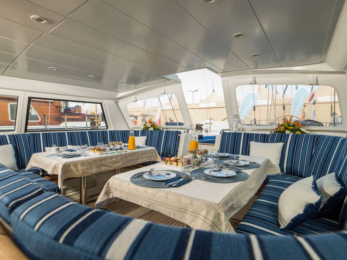 Combining sporting performance with the highest levels of on board comfort, Vivid yacht is entirely designed by the yard's in-house team, with naval architecture by Doug Peterson.