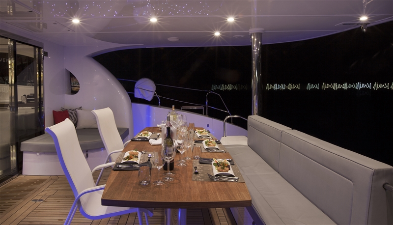 The power catamaran FOREVER has ample areas on deck to enjoy.