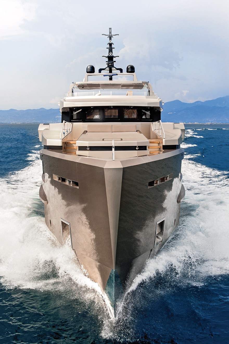 Exterior living is capacious on 3 levels. The main aft deck boasts ample seating and sunning space and is adjacent to the salon. An upper deck has an alfresco dining option, exterior lounge and sliding glass doors to the upper salon.