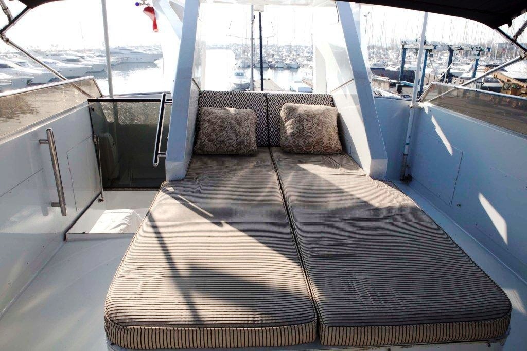 Wrap around decks lead to the foredeck and double sunpad/seating area. Further outdoor space is aft of the sky lounge on the sundeck, ideal for entertaining.