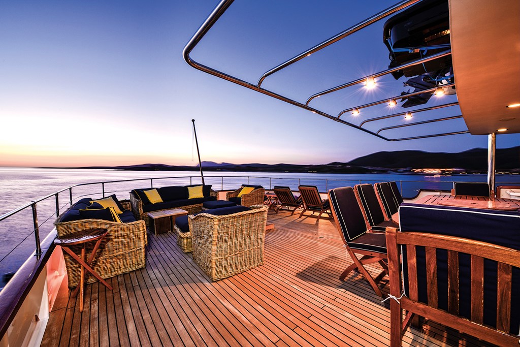 NUMBER NINE can accommodate up to 11 guests comfortably in 5 staterooms. There is a Full-width master stateroom on the upper deck with en-suite shower room, sauna, and lounge.