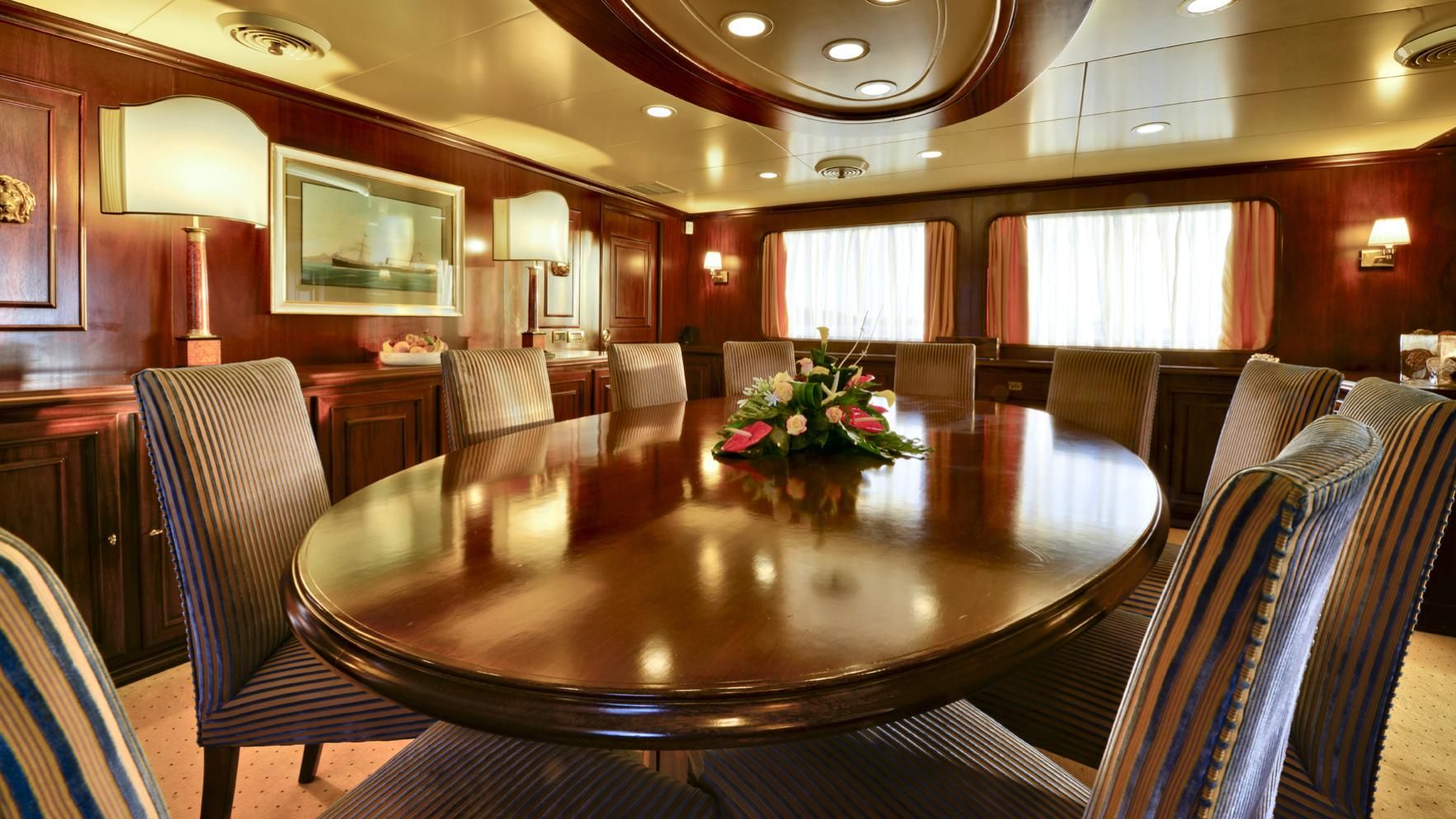 NOTABLE FEATURES NUMBER NINE: ~ Great charter record ~ Interior by Bannenberg &Rowell ~ Perfect combination of performance & stability ~ Spa pool ~ Sunbathing area ~ Several dining areas ~ Stabilisers ~ Water toys