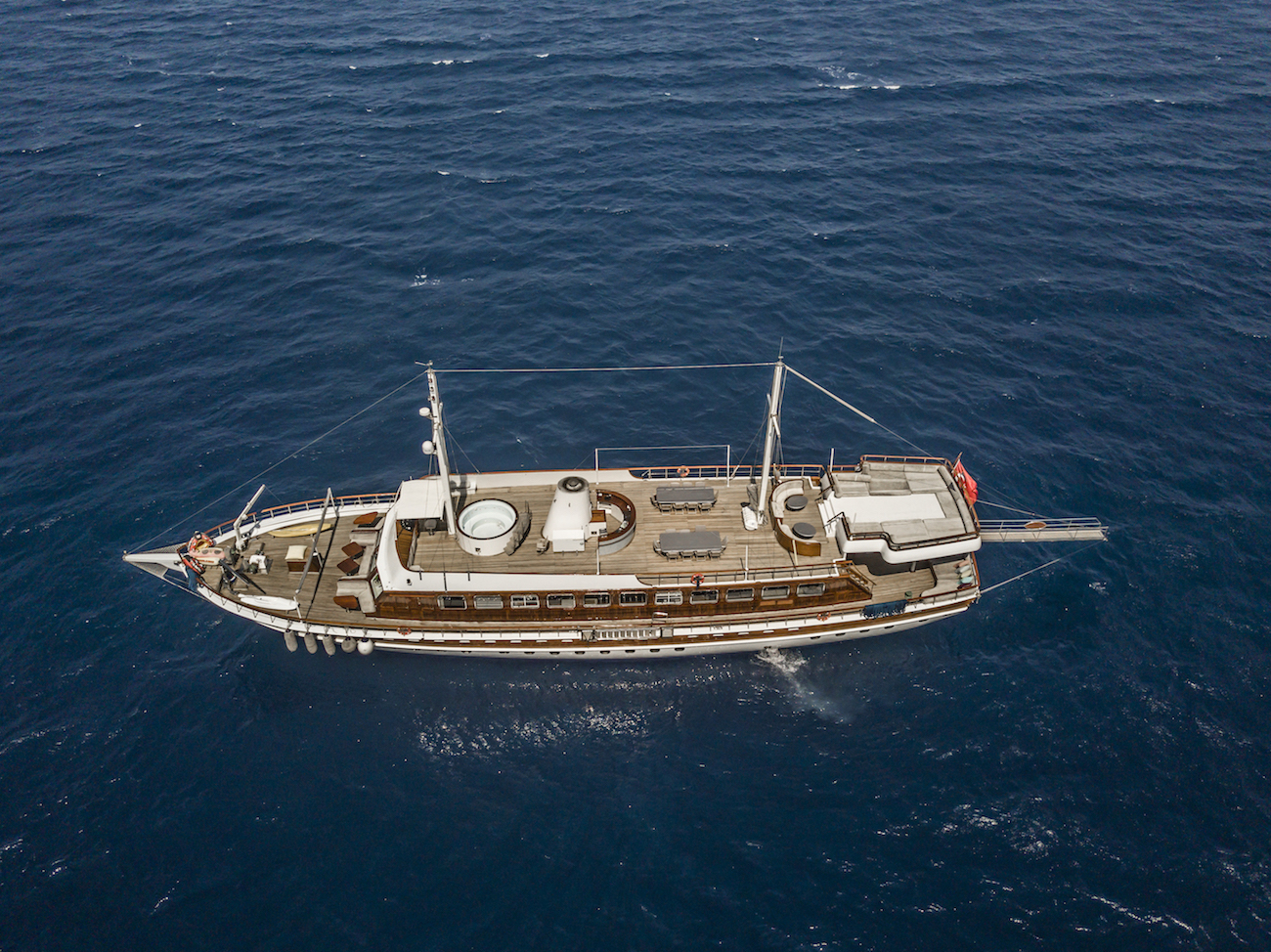 ELARA 1 is the ideal yacht for large groups, the yacht offers 6 double cabins and 6 twin cabins, the twin cabins are all able to convert into doubles if required. ~4.80m tender with 90hp outboard engine