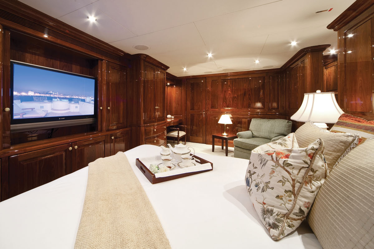 She is decorated in fine fabrics with black walnut throughout and offers accommodation for 12 guests in 6 cabins.