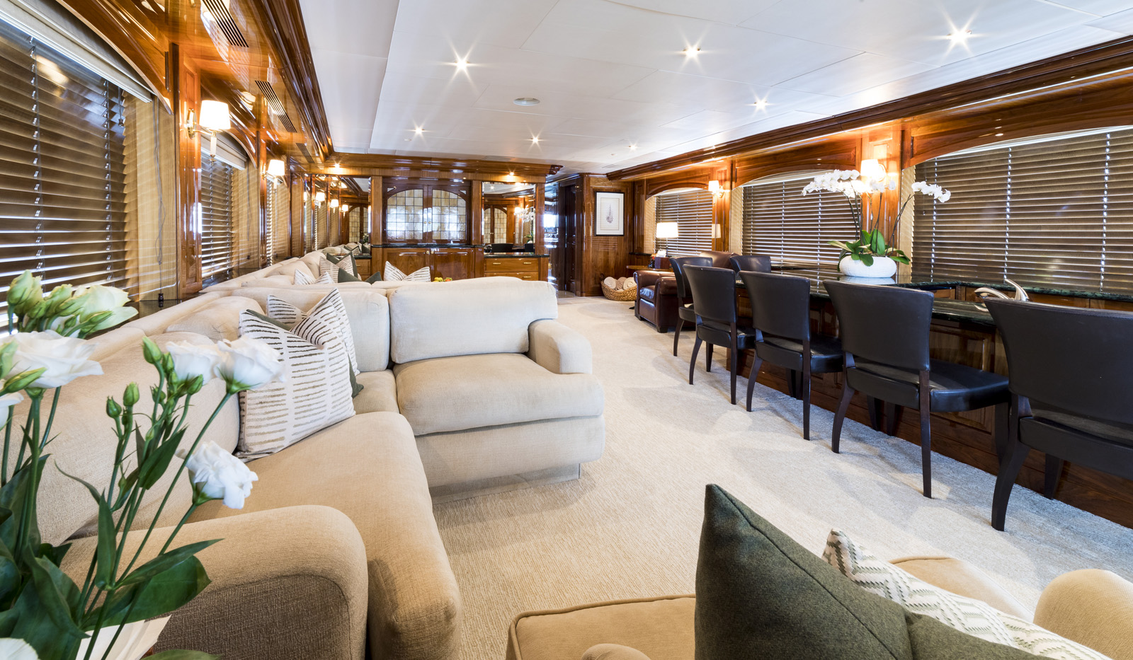 She is decorated in fine fabrics with black walnut throughout and offers accommodation for 12 guests in 6 cabins.