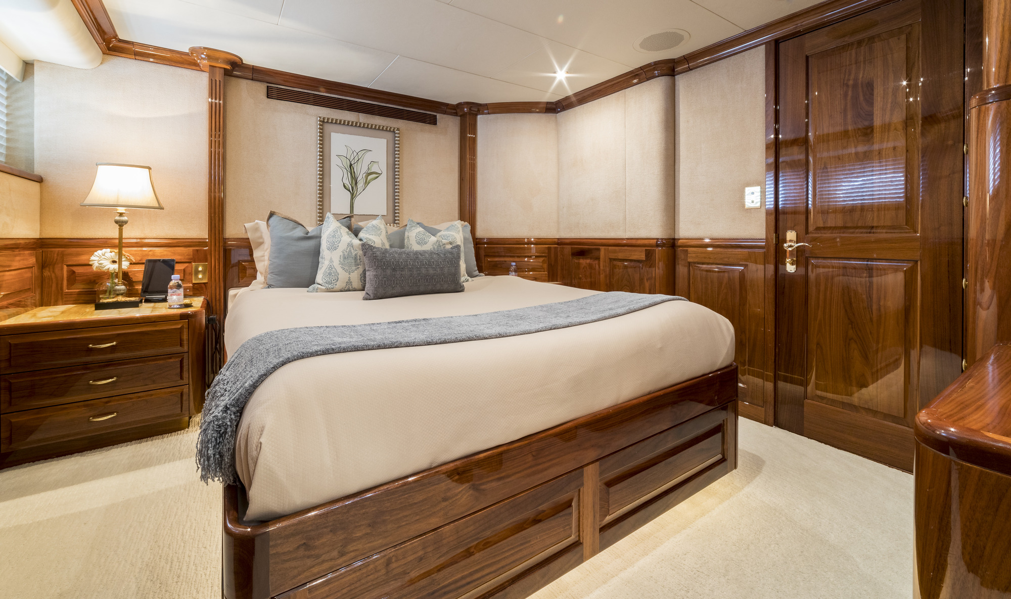 She is decorated in fine fabrics with black walnut throughout and offers accommodation for 12 guests in 6 cabins.