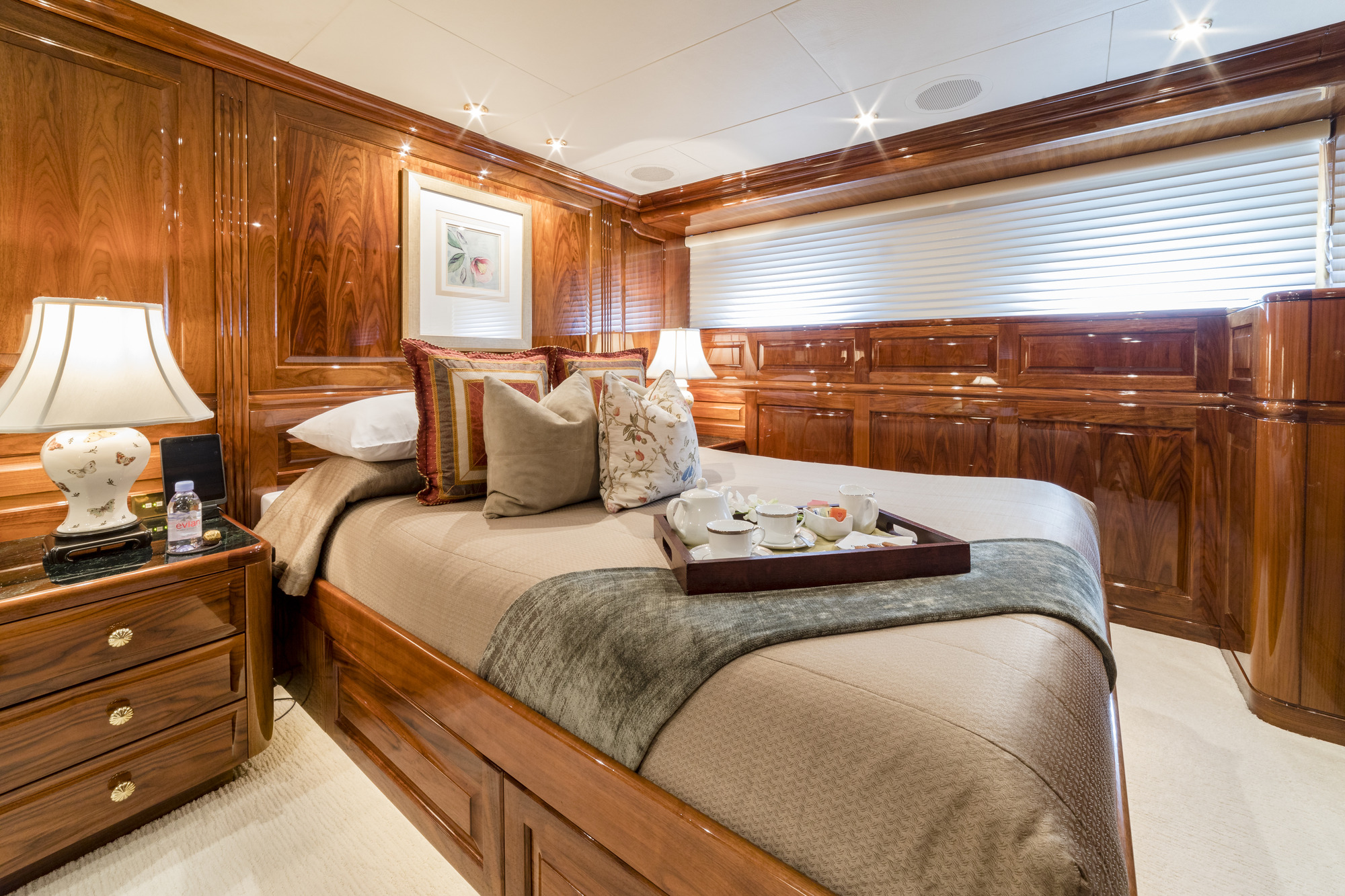 She is decorated in fine fabrics with black walnut throughout and offers accommodation for 12 guests in 6 cabins.