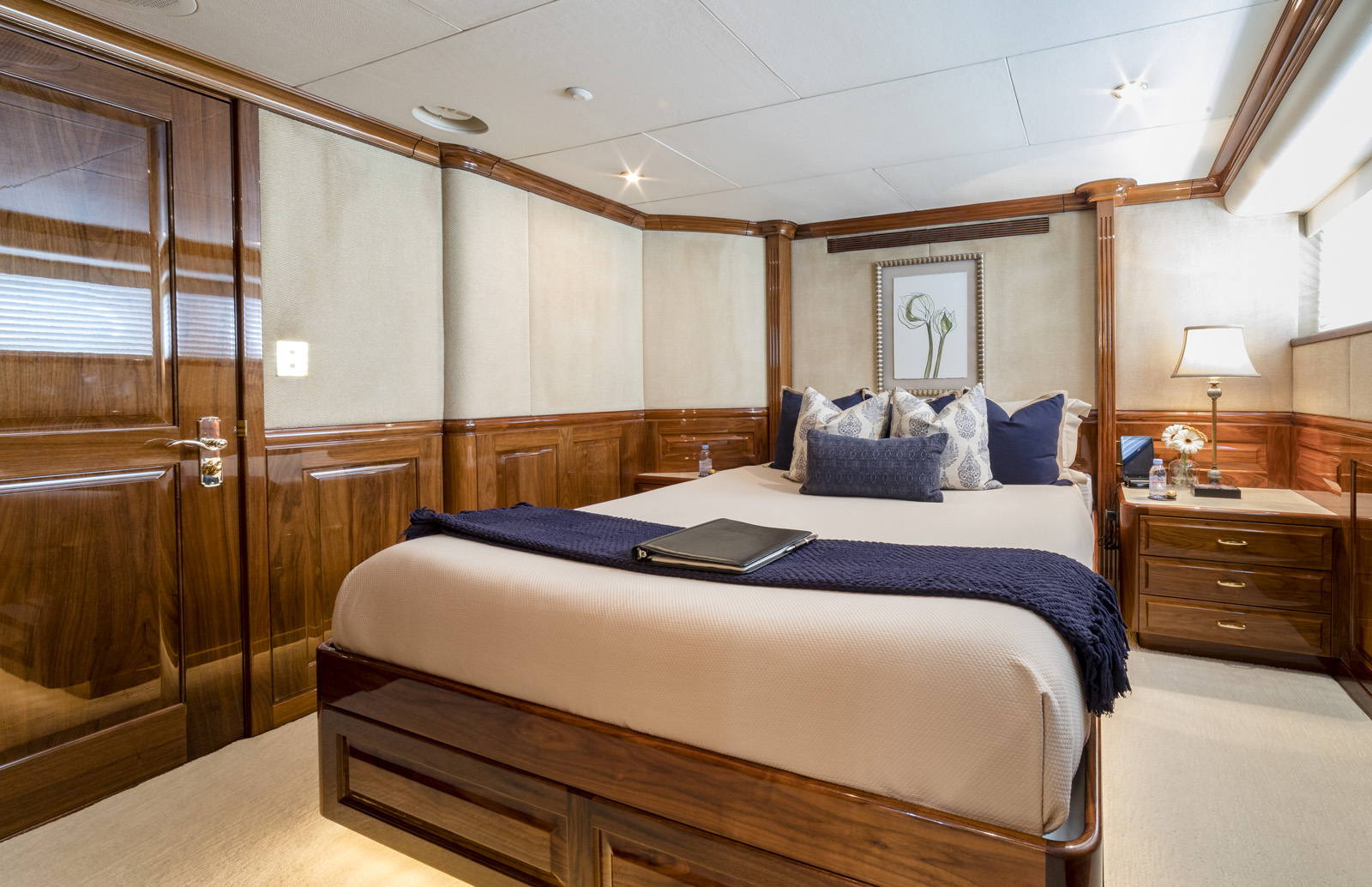 She is decorated in fine fabrics with black walnut throughout and offers accommodation for 12 guests in 6 cabins.