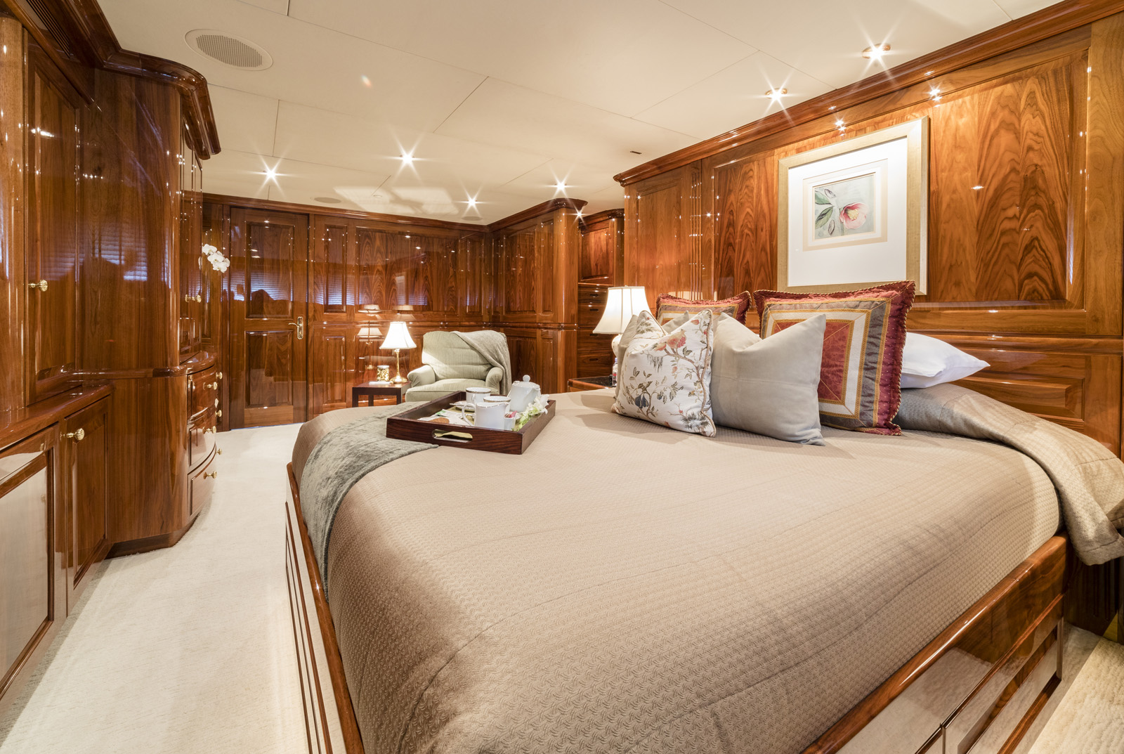 She is decorated in fine fabrics with black walnut throughout and offers accommodation for 12 guests in 6 cabins.
