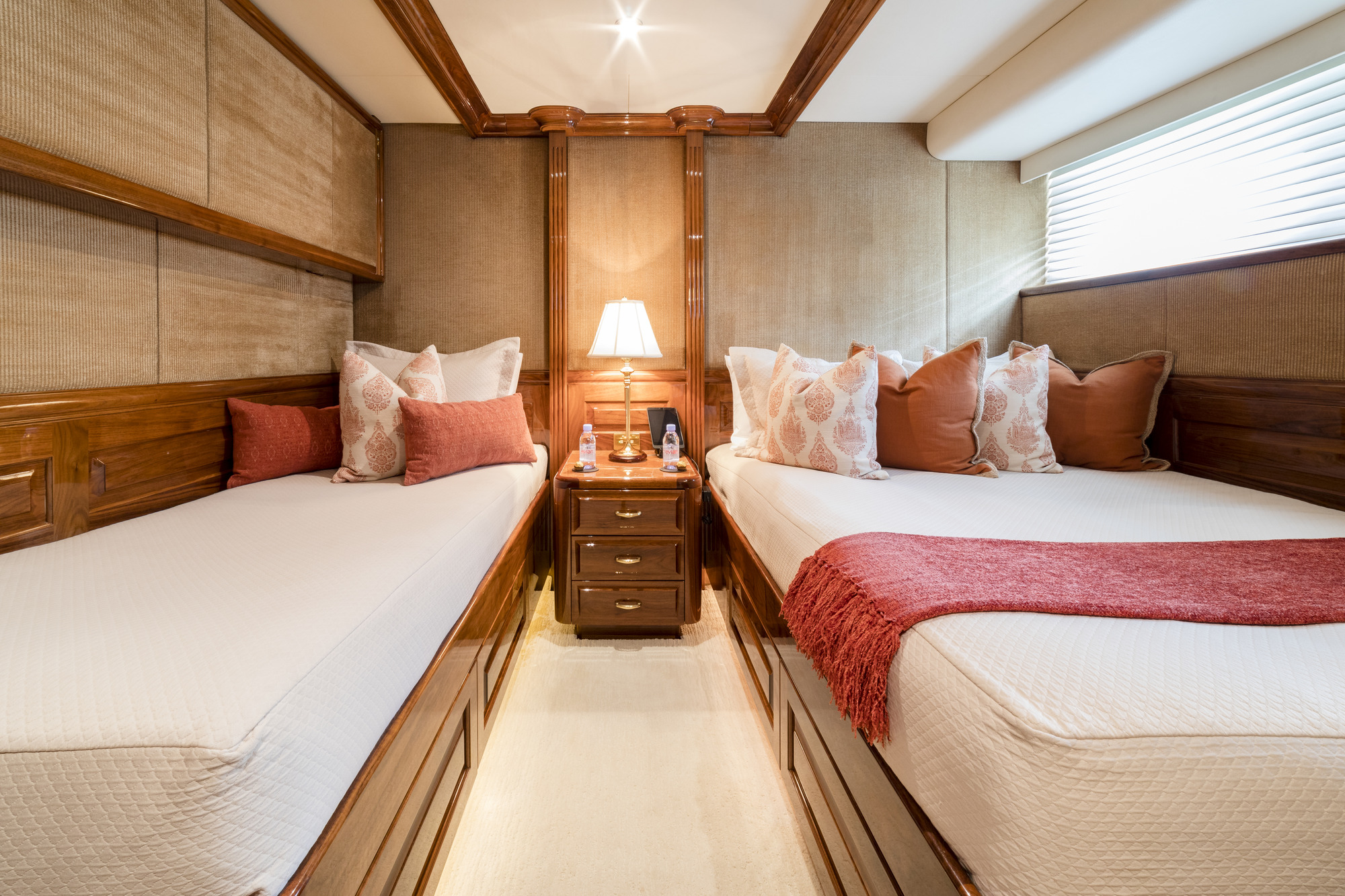 She is decorated in fine fabrics with black walnut throughout and offers accommodation for 12 guests in 6 cabins.